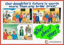 Bride Price- the amount of money or property or wealth paid by the groom or his family to the parents of a woman upon the marriage of their daughter to the groom. The tradition of bride price is practiced differently all around the world, but permit me to say that some parts of Nigeria are abusing it, with a capital A.