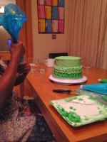 So as we continued with the butter icing, there were so many hiccups from the butter icing not being sufficient to struggling to get the design right. The pictures say it all. You needed to have seen my aunt’s face during the process of fixing hiccups- no smiles at all, she was worried that everything was falling apart, and if there’s anyone that hates to see her handwork fall apart before her eyes, it’s my Aunt. But everything came together in the end, amazingly!