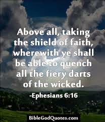 Her words never left my mind. ‘To add salt to injury’, the next morning, the thought that rose its ugly head was: ‘look for a different job, remember the test you did. You did not pass that even with the right qualifications to get the job in UK, so how do you expect any different when you don’t have the necessary requirements. Save yourself another heartache’. Now this thought shook me. ‘oga fear’ grabbed the opportunity and ‘stood at attention’ in my mind. Then the Holy Spirit gave me this passage- Ephesians 6:16 In addition to all this, take up the shield of faith, with which you can extinguish all the flaming arrows of the evil one.